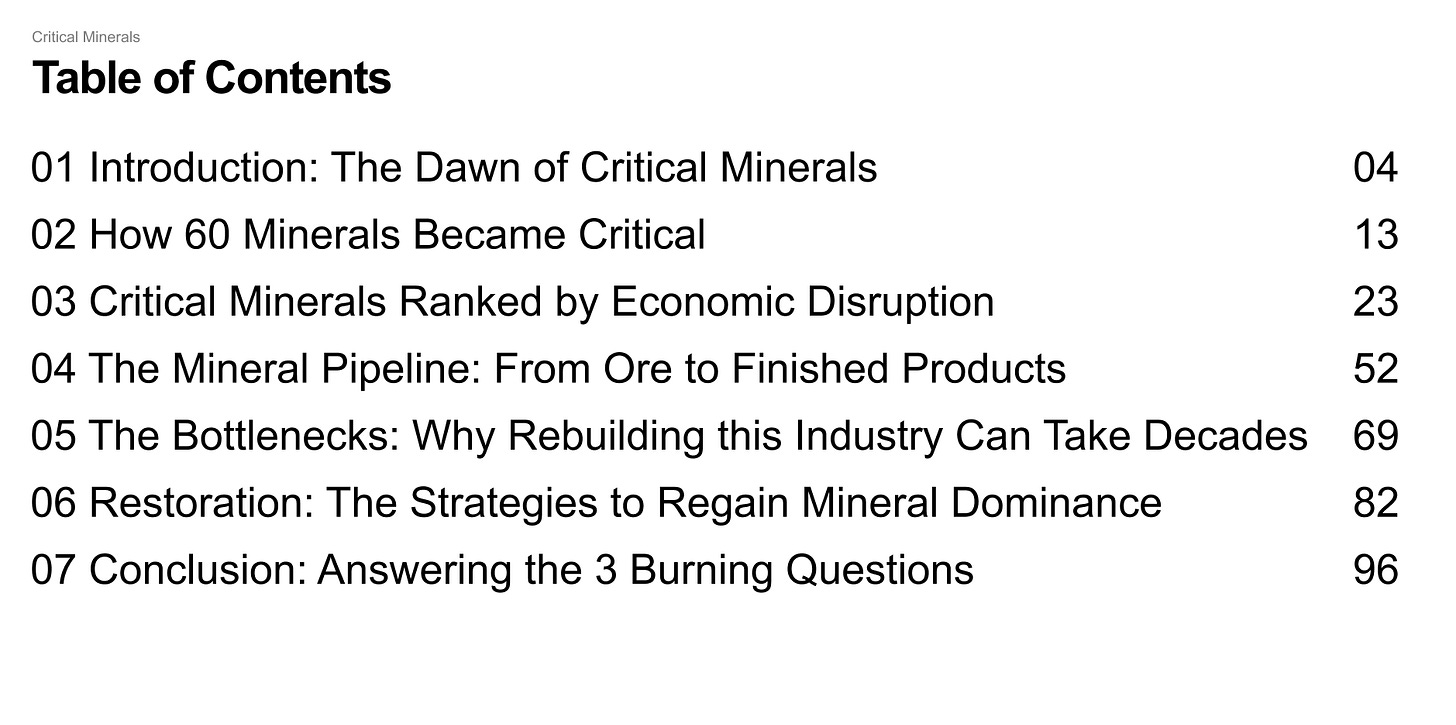 This 103-page deep dive examines critical minerals landscape and economy from the ground up: