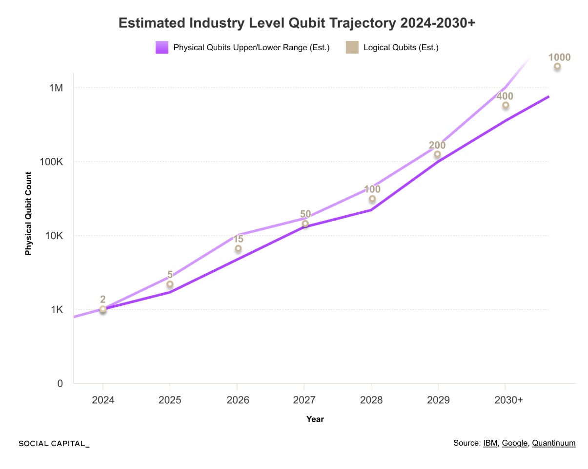 Cryptographically relevant attacks require thousands to tens of thousands of logical qubits operating with very low error rates. No existing system is close.