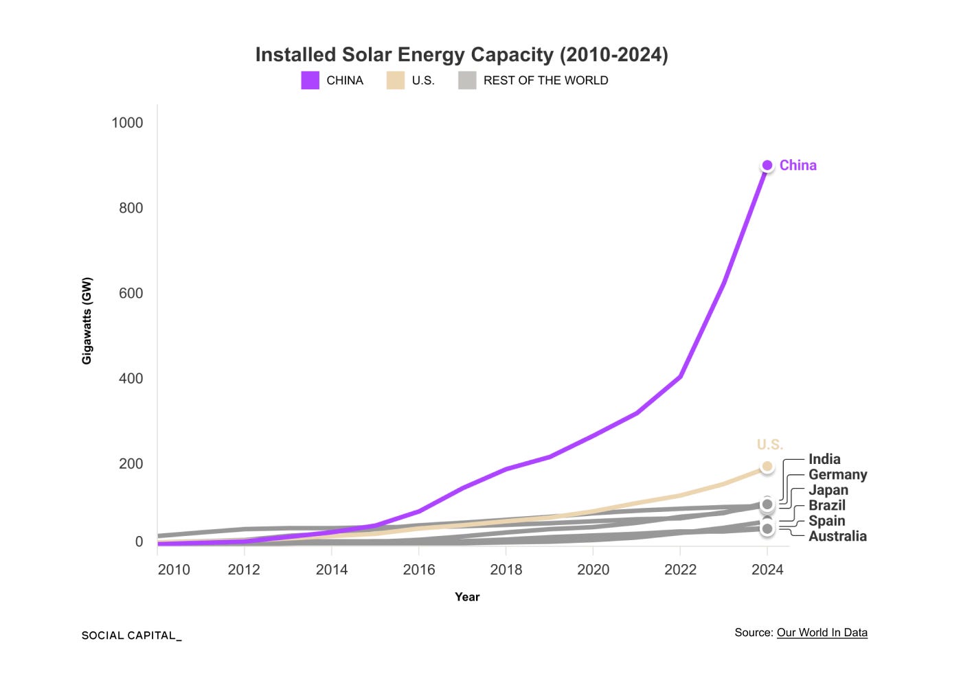 China also deployed solar at scale. Last year, China installed more new solar capacity than any other country by a wide margin, and more than the U.S. has in its entire history