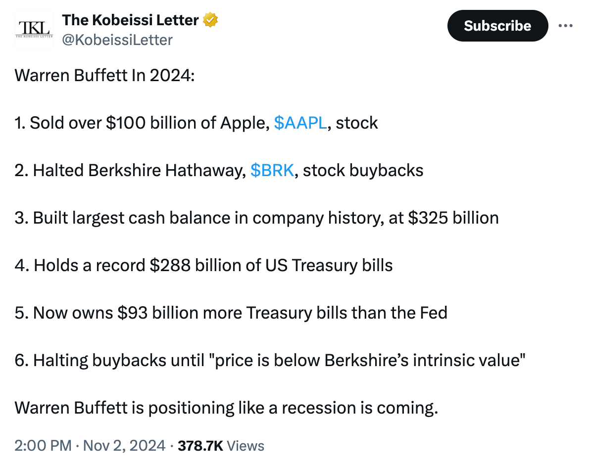 Seems weird people aren't taking Buffet's "incoming recession" positioning more seriously