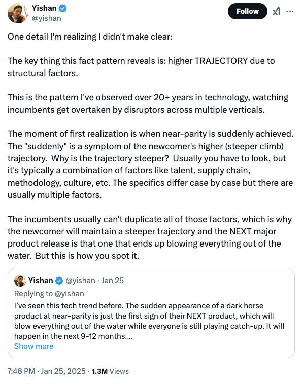 (I posted some more thoughts on X yesterday. The team and I are currently putting together a follow-up AI Deep Dive that will explain the story from the transformer model in 2017 to this current moment, which will be published in a few days.)